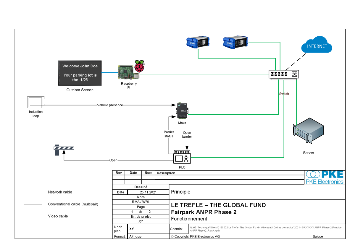AnprFairpark is a Microsoft Windows Service collecting license plate whitelist data from a https Fairpark XML source. On car entrance detected by presence loop (Moxa I/O Devices) AnprFairpark will grant access to parking on match license plates to given whitelist data. Furthermore AnprFairpark is able to send data to a Raspberry device to display a welcome screen. It is also possible to configure eMail messages on connection failures of cameras and Moxa devices.