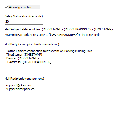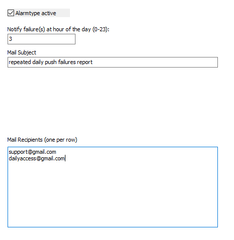 - enable/disable notification for this alarmtype - Notify failure(s) at hour of the day (0-23):