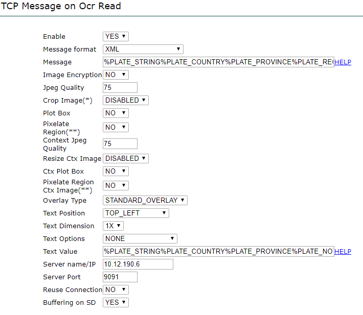 - [m] Message: %PLATE_STRING%PLATE_COUNTRY%PLATE_PROVINCE%PLATE_REGION%PLATE_NOT_READ%DATE%TIME%OCRSCORE%NREAD%NET_TRIG_ID%SITE_ADDRESS%IMAGE_BW