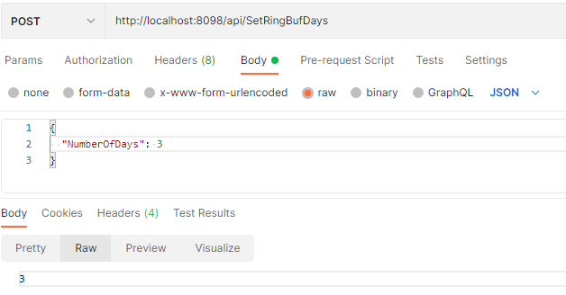 - SetRingBufDays (POST) http://[HostName]:8098/api/SetRingBufDays